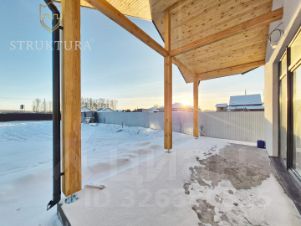Дом построен из качественных материалов, стоит на высоком фундаменте, защищённом отмосткой. Стильный и практичный фасад отделан штукатуркой кремового цвета в сочетании с элементами из декоративного кирпича. Крыльцо находится под отдельной крышей, которая изнутри отделана деревом, оно оборудовано удобными монолитными ступенями. Входная группа выполнена из массивного бруса с интерьерным деревянным коньком. Крыша покрыта скатной кровлей серого цвета - всё это вместе придает дому стильный и современный внешний вид. Просторная терраса, обрамлённая столбами из толстого бруса, находится под общей крышей дома, она также оборудована ступенями для удобства спуска и подъема. Имеется водосточная система и снегозадержатели.