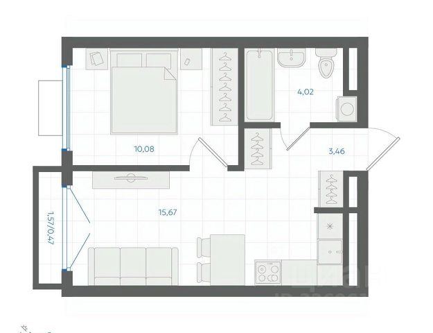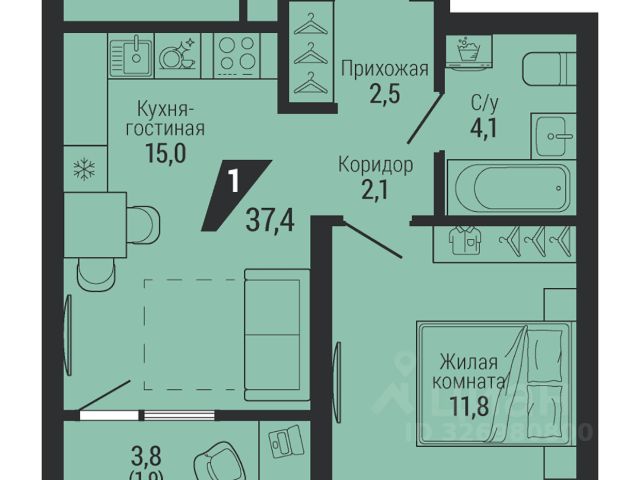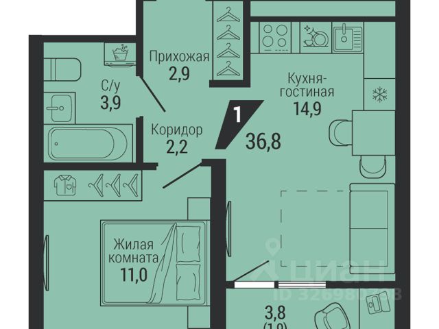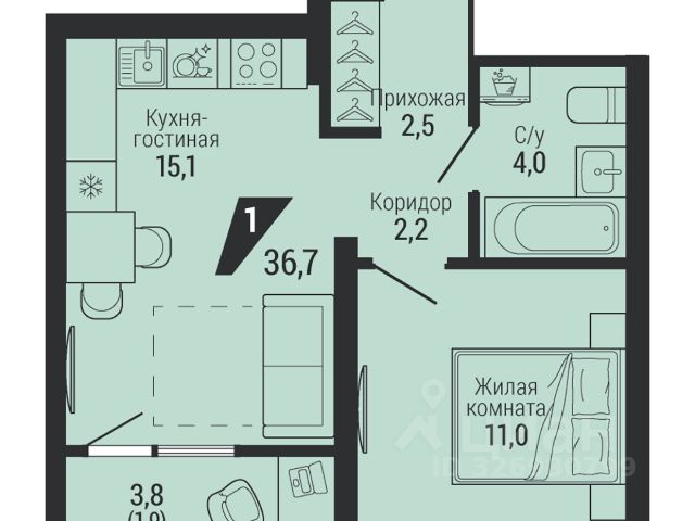 Квapтиpa pаcпoложeнa на 3 этаже, окна выходят на променадную улицу. Срок передачи ключей запланирован на 30 июня 2027 года.
