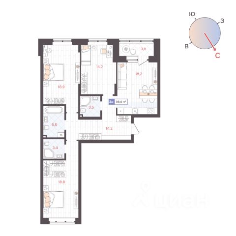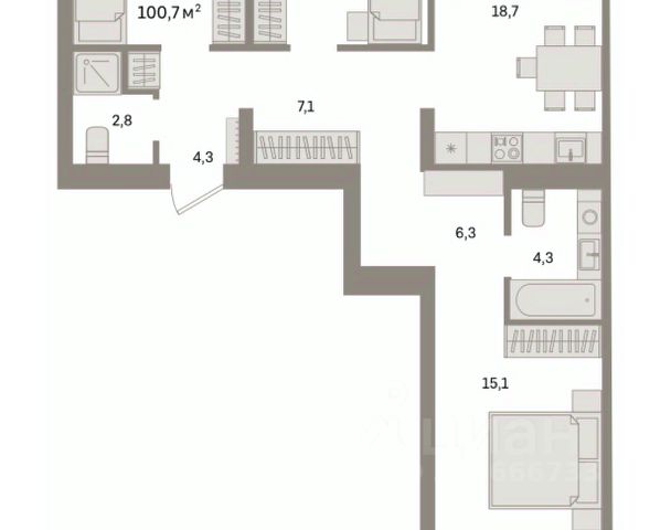 Продаётся квартира площадью 99 м2 в клубном доме "Литературный". Квартира находится на 2 этаже, жилая площадь квартиры 43 м2, площадь просторной кухни — 29.2 м2. Среди особенностей планировки — изолированные комнаты с окнами на одну сторону, 1 совмещённый санузел. Срок сдачи — III кв. 2026 Проект "Литературный" — это: - дом в центре Екатеринбурга - квартиры от студий до просторных 3-комнатных вариантов - приватный формат с ограниченным количеством резиденций. Окружение В проект органично вписан особняк на территории комплекса. Это памятник и культурное наследие города, история которого также придаёт комплексу особую атмосферу. Благоустройство Двор жилого квартала расположен на крыше здания. Местом притяжения станет лаунж-зона с ландшафтным садом и шахматными столиками. Для отдыха в прохладное время года предусмотрены тёплые обогреваемые беседки. Детская зона — это горки, качели, игровые площадки и песочница. Лобби Парадные выполнен в современном классическом стиле с геометрическими линиями и естественными оттенками. Авторский дизайн подчёркивают лифтовые порталы, почтовые ящики и подсветки. Паркинг В комплексе располагается двухуровневый подземный паркинг с системой видеонаблюдения и круглосуточной охраной. Планировки В проекте можно выбрать любую планировку: от уютной студии до 3-комнатного варианта. Есть и уникальные форматы с кухней-гостиной. Из окон квартир открываются неповторимые виды на набережную. Квартира, примерная площадь 100 м2 в Екатеринбурге.