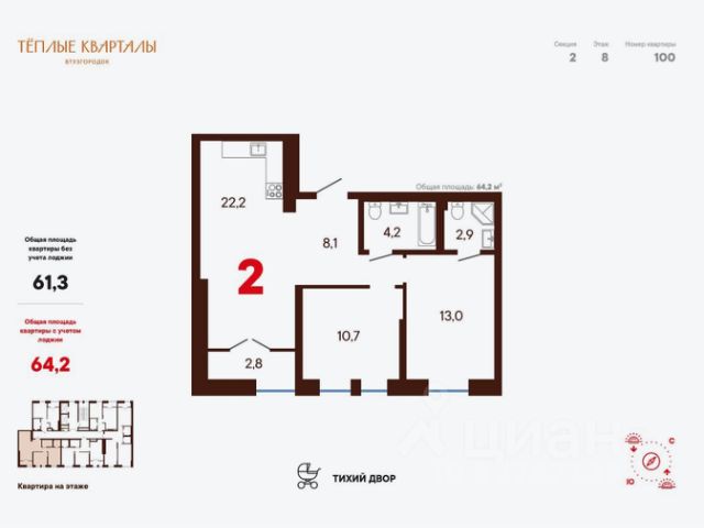 • ✅ Объект наибольшей площади: 57,2 м²