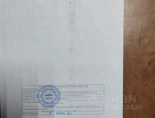 Продается 1/3 доли в 3х комнате. квартире в р.п. Малышева, ул. Азина д. 13. Квартира смежно-раздельной планировки, общ. площадь. 60,7 квм., находится на 1 этаже 2х этажного дома, комната 15 квм. отдельная, закрывается на замок, кухня и сан. узел общего пользования со вторым собственником (женщина, ее 2 комнаты тоже закрываются на замок). В комнате простой косметический ремонт, деревянное окно и пол, мебель оставлю по согласованию. Долгов за 1/3'долю нет, собственник доли совершеннолетний. Квартира находится в тихом районе, все необходимое рядом, в шаговой доступности, магазины, организации, школа и т.д., поселок маленький. Здесь ходят автобусы по расписанию и есть частное и яндекс такси. Подойдет приезжим, или как временное жильё, за не большую стоимость можно купить помещение для оформления постоянной прописки в России. Позвоните и я расскажу подробно. ID объекта в нашей базе: 17966