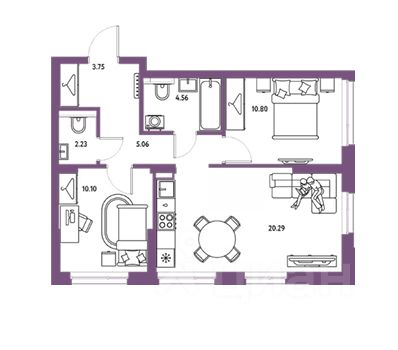 ПЛАНИРОВКА. У квартиры удачная и очень удобная планировка: кухня-гостиная 22,74м2 с максимальным освещением (3 широкоформатных окна), две спальных комнаты по 12м2, 2 санузла (из одной можно сделать кабинет или гардеробную), ниши под хранение и вместительная прихожая.