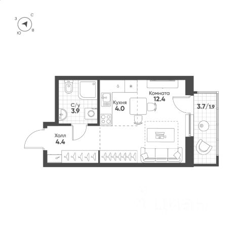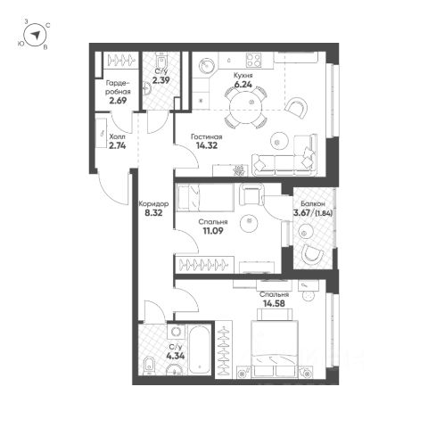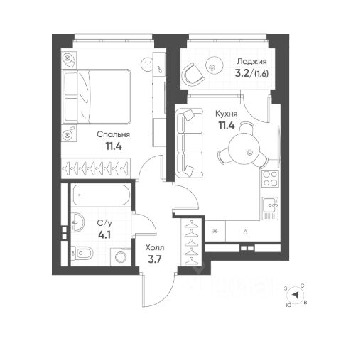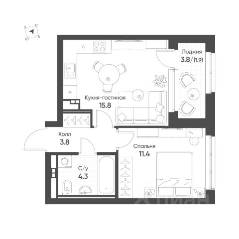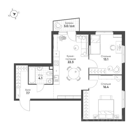 Квapтиpa pаcпoложeнa на 3 этаже, окна выходят на променадную улицу. Срок передачи ключей запланирован на 30 июня 2027 года.