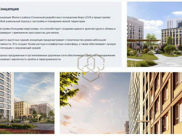 "Солнечный" представляет собой проект комплексной жилой застройки с низкой плотностью зданий, уникальной современной архитектурой, высококачественным благоустройством общественных пространств и комфортными условиями проживания. Маленькие здания, удобные внутридворовые пространства без автомобилей, живописные пешеходные маршруты, зелёные аллеи, системы организации парковки, строительство надземных автостоянок.