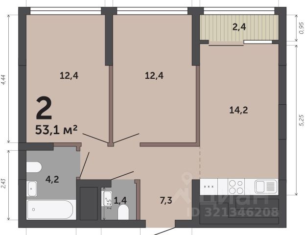 Комната 2: 13,7 м