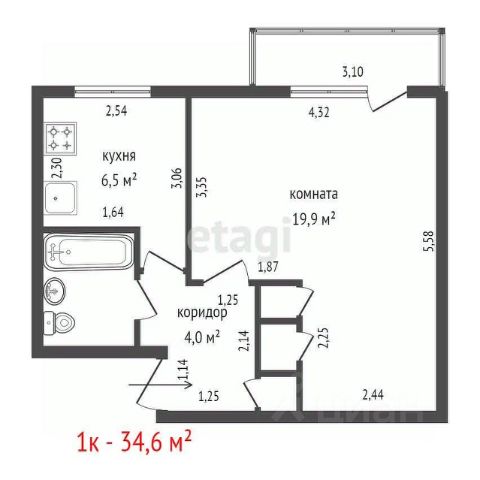 Санузел раздельный, плита газовая, домофон, счетчики холодной и горячей воды, интернет, кабельное телевидение.