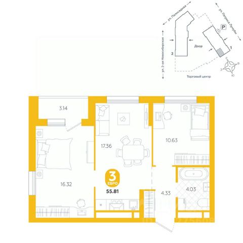 Квартира находится в ЖК "Бодровский" от федерального застройщика "Паритет Девелопмент". Это жилой комплекс комфорт-класса с современной архитектурой, расположенный в Екатеринбурге в районе улиц Патриса Лумумбы и 2-й Новосибирской. Добраться от него до центра города можно всего за 25 минут, дорога до ЕКАДа займет 12 минут. В окружении жилого комплекса есть шесть детских садов, пять школ, три больших парка, пять спорткомплексов, в том числе курортный комплекс Уктус. Квартал состоит из двух секций переменной этажности (от 14 до 24 этажей) и подземного паркинга с кладовыми, к которым можно будет спуститься на лифте. На первых этажах предусмотрены коммерческие помещения: жители смогут сделать маникюр, воспользоваться услугами ателье, выпить кофе с круассаном, не покидая своего района. Ввод в эксплуатацию в III кв. 2027 года. Территория комплекса огорожена от машин и посторонних людей. Озеленение с многолетними растениями и деревьями создает ощущение близости к природе. Двор наполнен всем необходимым: песочницы и качели для самых маленьких, интерактивная башня для детей постарше, воркаут-зона и места для отдыха. На всей территории реализована безбарьерная среда. В парадных выполнен авторский ремонт. За счет панорамного остекления и 4-метровых потолков там всегда много естественного света. Предусмотрены колясочные с местами для хранения спортинвентаря и креплениями для велосипедов. В проекте представлены студии, классические одно- и двухкомнатные варианты, а также двух-, трех- и четырехкомнатные квартиры в евроформате площадью от 25,32 до 76,65. Все планировки — функциональные и подходящие новоселам как с детьми, так и без них. Есть варианты с лоджиями, где можно организовать дополнительное пространство для отдыха, спорта или работы, а еще квартиры с мастер-спальней, гардеробной, двумя санузлами. В каждой предусмотрена вытяжная вентиляция с естественным побуждением, счетчики с телеметрией и корзины для кондиционеров. Характеристики квартиры: этаж - 3 количество комнат - 1 номер помещения - 12 площадь квартиры - 28,3 кв.м Чтобы сэкономить время и деньги, можно приобрести квартиру сразу с ремонтом от застройщика. На выбор 3 конфигурации: базовый, с кухонным гарнитуром, с кухонным гарнитуром и другой мебелью - в светлом и темном оттенках. Ремонт можно включить в ипотеку.