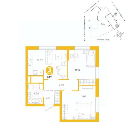 Квартира находится в ЖК "Бодровский" от федерального застройщика "Паритет Девелопмент". Это жилой комплекс комфорт-класса с современной архитектурой, расположенный в Екатеринбурге в районе улиц Патриса Лумумбы и 2-й Новосибирской. Добраться от него до центра города можно всего за 25 минут, дорога до ЕКАДа займет 12 минут. В окружении жилого комплекса есть шесть детских садов, пять школ, три больших парка, пять спорткомплексов, в том числе курортный комплекс Уктус. Квартал состоит из двух секций переменной этажности (от 14 до 24 этажей) и подземного паркинга с кладовыми, к которым можно будет спуститься на лифте. На первых этажах предусмотрены коммерческие помещения: жители смогут сделать маникюр, воспользоваться услугами ателье, выпить кофе с круассаном, не покидая своего района. Ввод в эксплуатацию в III кв. 2027 года. Территория комплекса огорожена от машин и посторонних людей. Озеленение с многолетними растениями и деревьями создает ощущение близости к природе. Двор наполнен всем необходимым: песочницы и качели для самых маленьких, интерактивная башня для детей постарше, воркаут-зона и места для отдыха. На всей территории реализована безбарьерная среда. В парадных выполнен авторский ремонт. За счет панорамного остекления и 4-метровых потолков там всегда много естественного света. Предусмотрены колясочные с местами для хранения спортинвентаря и креплениями для велосипедов. В проекте представлены студии, классические одно- и двухкомнатные варианты, а также двух-, трех- и четырехкомнатные квартиры в евроформате площадью от 25,32 до 76,65. Все планировки — функциональные и подходящие новоселам как с детьми, так и без них. Есть варианты с лоджиями, где можно организовать дополнительное пространство для отдыха, спорта или работы, а еще квартиры с мастер-спальней, гардеробной, двумя санузлами. В каждой предусмотрена вытяжная вентиляция с естественным побуждением, счетчики с телеметрией и корзины для кондиционеров. Характеристики квартиры: этаж - 13 количество комнат - 4 номер помещения - 281 площадь квартиры - 75,61 кв.м Чтобы сэкономить время и деньги, можно приобрести квартиру сразу с ремонтом от застройщика. На выбор 3 конфигурации: базовый, с кухонным гарнитуром, с кухонным гарнитуром и другой мебелью - в светлом и темном оттенках. Ремонт можно включить в ипотеку.