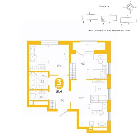 Евроформат объединяет кухню и гостиную в одно просторное помещение, что создает ощущение свободы и открытости пространства. Такая планировка предлагает гибкость в оформлении интерьера, позволяя обустроить зону в соответствии с личными предпочтениями, будь то уютный уголок для чтения или стильная обеденная зона. Идеально для тех, кто стремится к гармонии практичности и эстетики в своем доме. Квартира располагается в ЖК "Комсомольский" — жилом комплексе комфорт-класса. Здесь вы будете наслаждаться беззаботной жизнью, ведь ваш дом — воплощение практичности, безопасности и надежности. Для удобства предусмотрены колясочные на первых этажах домов, где можно оставить велосипеды и коляски в тепле. За безопасность отвечают система электронных ключей и видеонаблюдение. Еще здесь собственная котельная, поэтому в доме всегда будут горячая вода и оплата счетов только за фактически потребленное тепло. ПРЕИМУЩЕСТВА ЖК На этаже 15 квартир Красивые и функциональные парадные с мягкой и стильной зоной для отдыха, книгообменником, встроенными почтовыми ящиками и нишами для сумок Колясочные с доступом по ключу IP-домофоны Тихие лифты с плавным ходом О ПРОЕКТЕ ЖК "Комсомольский" строится в спокойном Кировском районе Екатеринбурга в границах улиц Сыромолотова — Рассветная — 40-лет Комсомола. Комплекс состоит из трех домов переменной этажности, которые выделяются динамичными линиями, выразительными фасадами и стильными лоджиями. ЛОКАЦИЯ Всё, что необходимо для повседневной жизни, находится недалеко от дома: школы, детские сады, продуктовые магазины, фитнес-клубы. Дорога до центра города на машине займет всего 10 минут — достаточно повернуть с улицы 40-летия Комсомола на улицу Владимира Высоцкого. Рядом с этим перекрестком начинается "Тропа здоровья" — большой терренкур вдоль "Каменных палаток". 10 мин до центра 3-4 минуты до школы No 82, гимназии No 176 4-5 минут до детских садов No 208, No 583, 266 20 мин до Свердловского областного медицинского колледжа и Центральной городской больницы No 7 В рамках стратегического развития района на первых этажах домов появятся коммерческие помещения, в которых откроются магазины и кафе. Следует учесть, что к 2030 году в Кировском районе планируется формирование регионального рекреационно-оздоровительного кластера, строительство ветки метро, расширение и модернизация старых промышленных зон социальной и бизнес-инфраструктуры, что приведет к созданию комфортной среды для жизни. Кроме того, в стратегию входит развитие Шарташского лесного парка как центра регионального и международного туризма. СПОСОБЫ ПОКУПКИ Ипотека: подберем выгодные условия в нескольких банках, чтобы вы могли выбрать лучшее Материнской капитал: можно использовать в качестве первоначального взноса Рассрочка: платите частями без % Сертификаты: позволяют оплатить часть стоимости квартиры О КОМПАНИИ "Паритет Девелопмент" — это современный и ответственный подход к реализации проектов в сфере жилищного строительства. Компания формирует сре