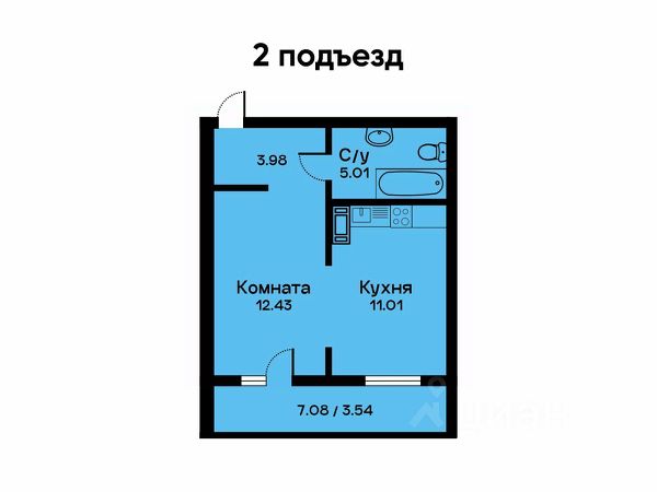 Евродвухкомнатная квартира от Застройщика в кирпичном 4-хэтажном доме.
