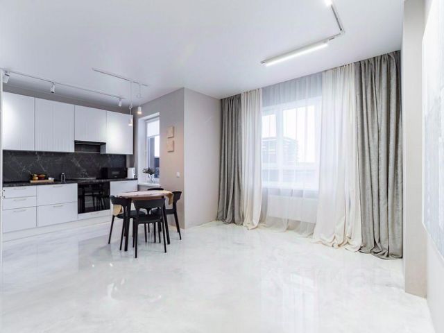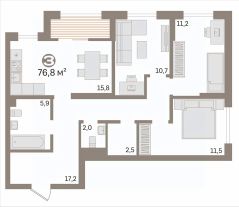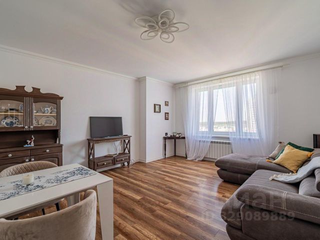 Кухня 16кв.м., гостиная 16кв.м, две спальни 18 и 12 кв.м одна с выходом на лоджию, которая застеклена и утеплена. Окна квартиры выходят на обе стороны дома,квартира солнечная и теплая, не угловая.