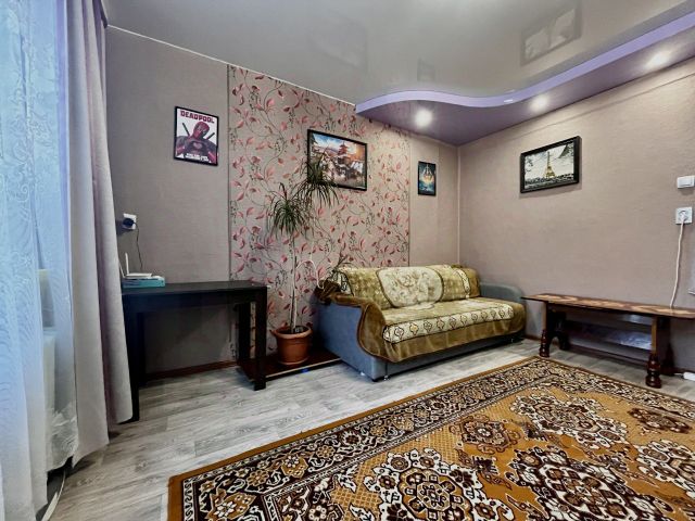 Квартира-хрущёвка. Ремонт сделан частично косметический. Везде поставлены пластиковые окна. На кухне и в зале заменены батареи. В зале - натяжной потолок. Частично постелен линолеум. Есть балкон (дерево, застеклён). Санузел совмещён (ванна, душ, унитаз, водонагревательный бак на 80 литров). Все выключатели опущены на уровне детей. Из мебели: кухонный гарнитур, сделанный на заказ под кухню с встроенной раковиной; комод; софа-кровать полуторка; шифоньер и парта (советские). При необходимости возможен вывоз мебели. На кухне есть газовая плита (4 горелки, духовка газовая). Газ, вода, отопление централизованные. На воду есть водяные счётчики. На электроэнергию- двухтарифный. Квартира с отделкой в Асбесте.