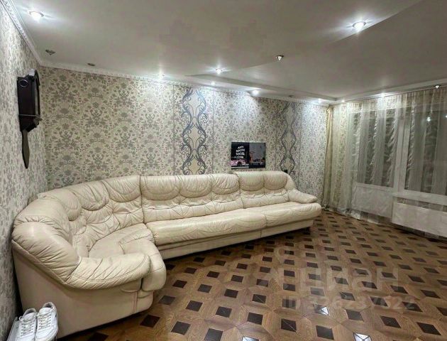 На полу в комнатах - качественный ламинат, в санузле и прачечной - керамогранит, на стенах - обои, двери выполнены в едином стиле, натяжные потолки, пластиковые окна.