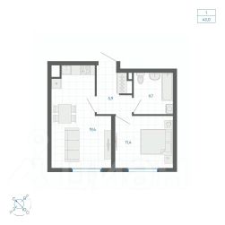 Общая площадь - 38,22 кв. м: эргономичная кухня 10,28 кв. м. с выходом на застекленную лоджию, просторная спальня 14,6 кв. м, совмещенный санузел 4,453 кв. м, коридор и прихожая площадью 7,28 кв. м. Высота потолков - 2,75 метра!