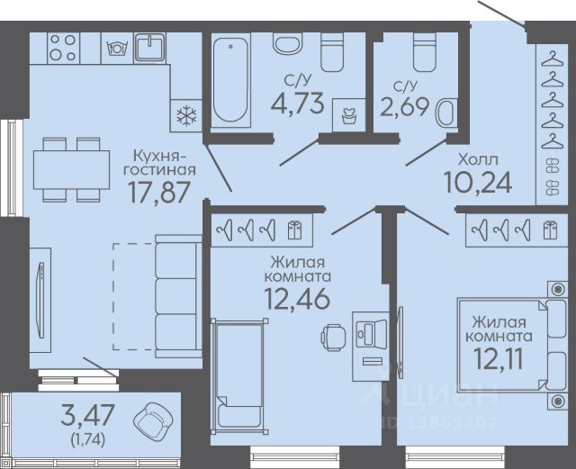 🔷 Средняя цена за м2:118,7 тыс. руб./м²