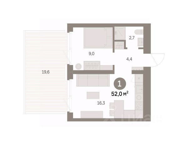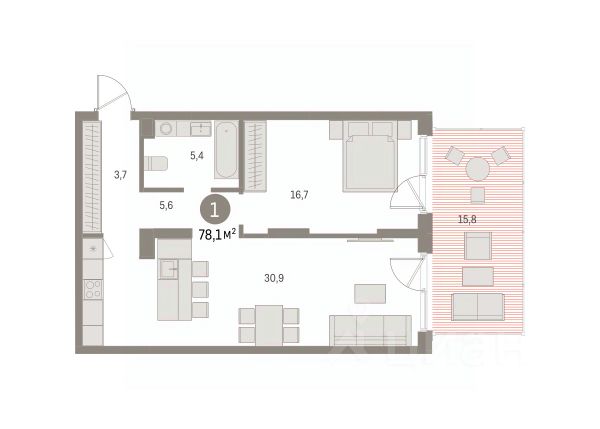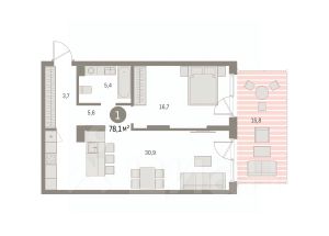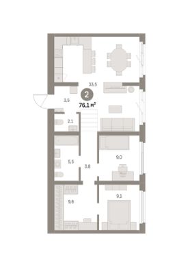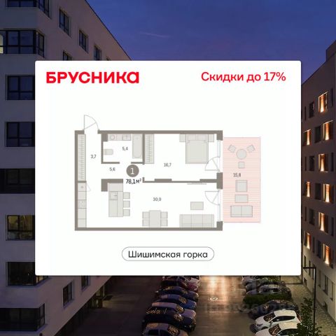 Квартира с кухней-гостиной и двумя спальнями в районе Шишимская горка. Особенности планировки: гардеробная, окна в пол, панорамное остекление, потолки 3 м и выше, предчистовая отделка, разнесённые спальни.