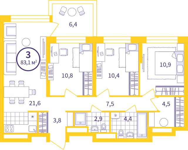 Квартира с кухней-гостиной и двумя спальнями в районе Шишимская горка. Особенности планировки: гардеробная, окна в пол, панорамное остекление, потолки 3 м и выше, предчистовая отделка, разнесённые спальни, стартовая цена.