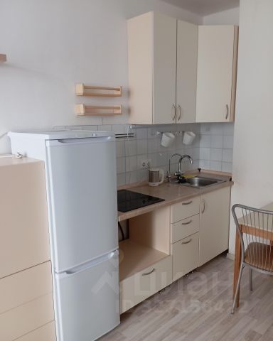 Студия, приобреталась у застройщика. Остается вся мебель (шкафы, диван, кухня, ниша, полки) и техника на фото (холодильник, стиральная машина, варочная поверхность). Мебель делалась на заказ под размеры квартиры с австрийской фурнитурой. Балкон утеплен, установлены пластиковые стеклопакеты и теплый пол, можно использовать как дополнительное жилое помещение.
