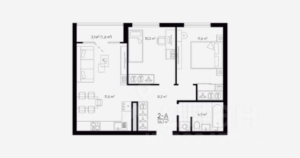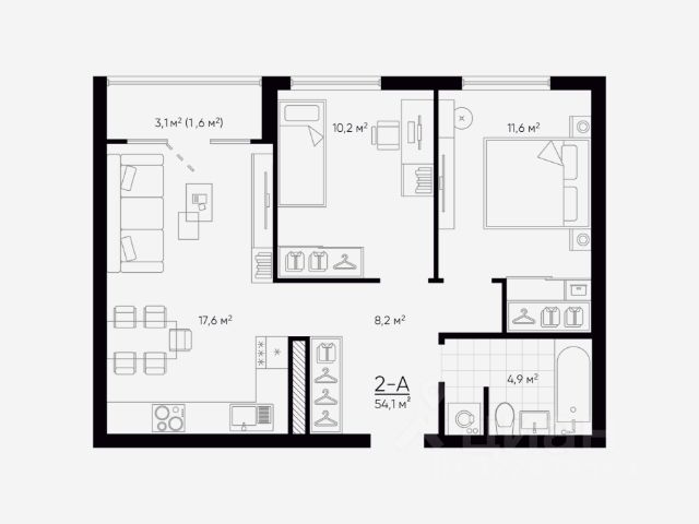 Продаётся квартира площадью 54.31 м2 в жилом комплексе "Эхо леса". Квартира находится на 10 этаже, жилая площадь квартиры 19.67 м2, площадь просторной кухни — 17.34 м2. Среди особенностей планировки — изолированные комнаты с окнами на одну сторону, 1 совмещённый санузел. Срок сдачи — I кв. 2028 Жилой комплекс "Эхо леса" — это: - дом в эко-стиле - двор с выходом в лесопарк - лаконичная архитектура - развитая инфраструктура вокруг квартала Инфраструктура В окружении проекта — вся необходимая инфраструктура: детские сады, школы, спортивный комплекс, продуктовые магазины, аптеки, кофейни, рестораны и салоны красоты. Благоустройство Концепция двора-парка продолжает тему леса. Ландшафт с продуманным всесезонным озеленением дополняют акценты: сухой ручей из камней, столы и навесы из натурального дерева, эко-тропы, фонтан и променад. Для взрослых предусмотрены пешеходные и велодорожки, для детей — игровые площадки для разных возрастов. Архитектура Переменная высота секций создаёт выразительный архитектурный облик. На фасадах — игра контрастных, при этом природных оттенков. Динамики зданию придают текстуры материалов: фактурной штукатурки и клинкерного кирпича. Лобби Интерьер в холле продолжает концепцию квартала и выполнен в эко стиле. В отделке используются элементы природных материалов с изображениями листвы и деревьев. Паркинг Тёплый подземный паркинг организован как единое пространство с собственным дизайном. Кладовые Индивидуальные помещения на техническом этаже — способ сохранить пространство в квартире. Попасть в кладовые можно на лифте. Планировки В продуманных планировках выделены тихие и шумные зоны. Приватные спальни и кабинеты спрятаны от маршрутов домашнего движения, а кухни-гостиные с барной стойкой вместо стены — всегда готовы к семейным праздникам. Из окон квартир открываются живописные виды на лес.