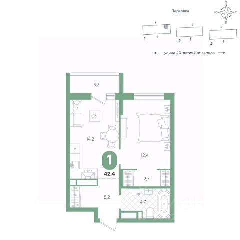 Евроформат объединяет кухню и гостиную в одно просторное помещение, что создает ощущение свободы и открытости пространства. Такая планировка предлагает гибкость в оформлении интерьера, позволяя обустроить зону в соответствии с личными предпочтениями, будь то уютный уголок для чтения или стильная обеденная зона. Идеально для тех, кто стремится к гармонии практичности и эстетики в своем доме. Квартира располагается в ЖК "Комсомольский" — жилом комплексе комфорт-класса. Здесь вы будете наслаждаться беззаботной жизнью, ведь ваш дом — воплощение практичности, безопасности и надежности. Для удобства предусмотрены колясочные на первых этажах домов, где можно оставить велосипеды и коляски в тепле. За безопасность отвечают система электронных ключей и видеонаблюдение. Еще здесь собственная котельная, поэтому в доме всегда будут горячая вода и оплата счетов только за фактически потребленное тепло. ПРЕИМУЩЕСТВА ЖК На этаже 15 квартир Красивые и функциональные парадные с мягкой и стильной зоной для отдыха, книгообменником, встроенными почтовыми ящиками и нишами для сумок Колясочные с доступом по ключу IP-домофоны Тихие лифты с плавным ходом О ПРОЕКТЕ ЖК "Комсомольский" строится в спокойном Кировском районе Екатеринбурга в границах улиц Сыромолотова — Рассветная — 40-лет Комсомола. Комплекс состоит из трех домов переменной этажности, которые выделяются динамичными линиями, выразительными фасадами и стильными лоджиями. ЛОКАЦИЯ Всё, что необходимо для повседневной жизни, находится недалеко от дома: школы, детские сады, продуктовые магазины, фитнес-клубы. Дорога до центра города на машине займет всего 10 минут — достаточно повернуть с улицы 40-летия Комсомола на улицу Владимира Высоцкого. Рядом с этим перекрестком начинается "Тропа здоровья" — большой терренкур вдоль "Каменных палаток". 10 мин до центра 3-4 минуты до школы No 82, гимназии No 176 4-5 минут до детских садов No 208, No 583, 266 20 мин до Свердловского областного медицинского колледжа и Центральной городской больницы No 7 В рамках стратегического развития района на первых этажах домов появятся коммерческие помещения, в которых откроются магазины и кафе. Следует учесть, что к 2030 году в Кировском районе планируется формирование регионального рекреационно-оздоровительного кластера, строительство ветки метро, расширение и модернизация старых промышленных зон социальной и бизнес-инфраструктуры, что приведет к созданию комфортной среды для жизни. Кроме того, в стратегию входит развитие Шарташского лесного парка как центра регионального и международного туризма. СПОСОБЫ ПОКУПКИ Ипотека: подберем выгодные условия в нескольких банках, чтобы вы могли выбрать лучшее Материнской капитал: можно использовать в качестве первоначального взноса Рассрочка: платите частями без % Сертификаты: позволяют оплатить часть стоимости квартиры О КОМПАНИИ "Паритет Девелопмент" — это современный и ответственный подход к реализации проектов в сфере жилищного строительства. Компания формирует сре