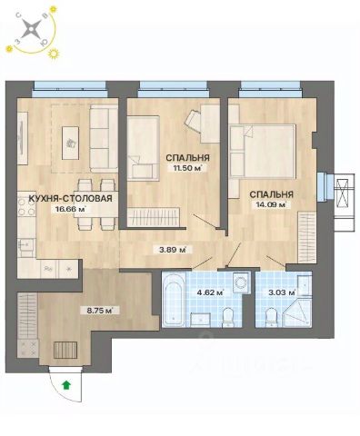 Площадь квартиры: Общая 68.3 м2