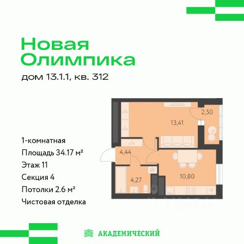 Кухня 10 м2 гостиная 17,6 м2+ кладовая 4,3 м2 + лоджия 4,3 м2