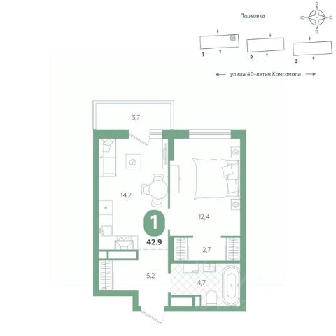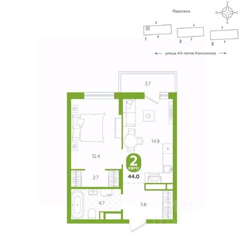 Эта квартира — образец функционала и практичности: встроенные ниши под шкафы эргономично организуют хранение, а высокие потолки подчеркивают ощущение простора. Здесь царит продуманный баланс — рациональная планировка и прозрачная логика пространства готовы служить вашим потребностям и создавать приятную среду для жизни. Квартира располагается в ЖК "Комсомольский" — жилом комплексе комфорт-класса. Здесь вы будете наслаждаться беззаботной жизнью, ведь ваш дом — воплощение практичности, безопасности и надежности. Для удобства предусмотрены колясочные на первых этажах домов, где можно оставить велосипеды и коляски в тепле. За безопасность отвечают система электронных ключей и видеонаблюдение. Еще здесь собственная котельная, поэтому в доме всегда будут горячая вода и оплата счетов только за фактически потребленное тепло. ПРЕИМУЩЕСТВА ЖК Красивые и функциональные парадные с мягкой и стильной зоной для отдыха, книгообменником, встроенными почтовыми ящиками и нишами для сумок Колясочные с доступом по ключу IP-домофоны Тихие лифты с плавным ходом О ПРОЕКТЕ ЖК "Комсомольский" строится в спокойном Кировском районе Екатеринбурга в границах улиц Сыромолотова — Рассветная — 40-лет Комсомола. Комплекс состоит из трех домов переменной этажности, которые выделяются динамичными линиями, выразительными фасадами и стильными лоджиями. ЛОКАЦИЯ Всё, что необходимо для повседневной жизни, находится недалеко от дома: школы, детские сады, продуктовые магазины, фитнес-клубы. Дорога до центра города на машине займет всего 10 минут — достаточно повернуть с улицы 40-летия Комсомола на улицу Владимира Высоцкого. Рядом с этим перекрестком начинается "Тропа здоровья" — большой терренкур вдоль "Каменных палаток". 10 мин до центра 3-4 минуты до школы No 82, гимназии No 176 4-5 минут до детских садов No 208, No 583, 266 20 мин до Свердловского областного медицинского колледжа и Центральной городской больницы No 7 В рамках стратегического развития района на первых этажах домов появятся коммерческие помещения, в которых откроются магазины и кафе. Следует учесть, что к 2030 году в Кировском районе планируется формирование регионального рекреационно-оздоровительного кластера, строительство ветки метро, расширение и модернизация старых промышленных зон социальной и бизнес-инфраструктуры, что приведет к созданию комфортной среды для жизни. Кроме того, в стратегию входит развитие Шарташского лесного парка как центра регионального и международного туризма. СПОСОБЫ ПОКУПКИ Ипотека: подберем выгодные условия в нескольких банках, чтобы вы могли выбрать лучшее Материнский капитал: можно использовать в качестве первоначального взноса Рассрочка: платите частями без % Сертификаты: позволяют оплатить часть стоимости квартиры О КОМПАНИИ "Паритет Девелопмент" — это современный и ответственный подход к реализации проектов в сфере жилищного строительства. Компания формирует среду, способную создать новое качество жизни для клиент