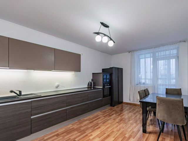 -кухню-стловую оборудованную кухонным гарнитуром с встроенной техникой (новая посудомоечная машина Haier, газовая плита Bosch, духовой шкаф Bosch, вытяжка), также микроволновая печь LG, двухстворчатый холодильник Bosch, телевизор, фильтр для питьевой воды