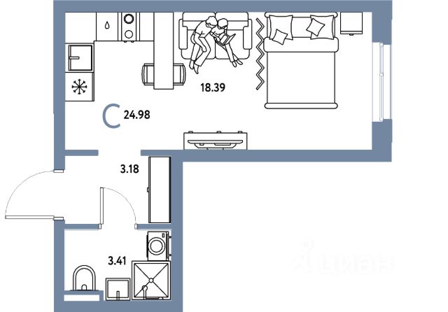 Студия сдаётся с отделкой "white box".Все подготовлено под ремонт: выровнены стены, бетонная стяжка на полу, проведена разводка электрики. Установлена сейф-дверь, окна - ПВХ профиль с 2х камерным энергосберегающим стеклопакетом. В санузле установлен унитаз.