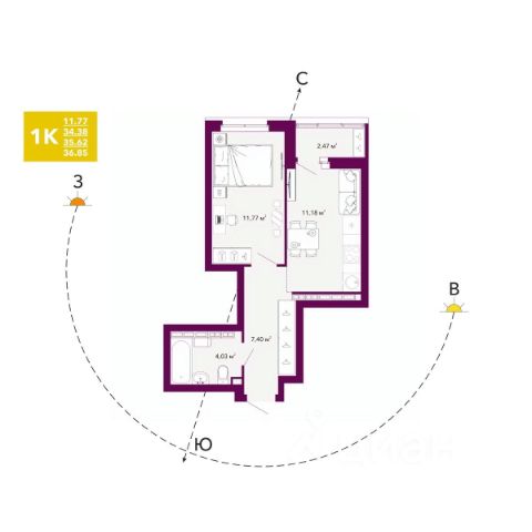 Ориентация жилого дома позволяет обеспечивать нормативную инсоляцию всех квартир, создавая при этом комфортные условия для проживания.