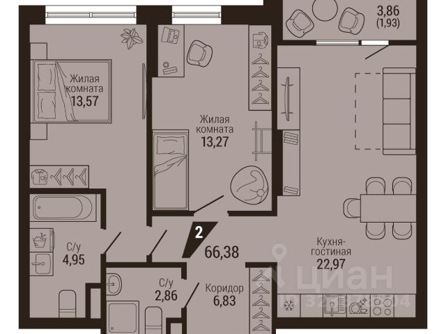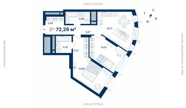 Во 2 очереди представлены студии, однокомнатные, двухкомнатные и трехкомнатные квартиры. В каждом их этих вариантов выполняется чистовая отделка.