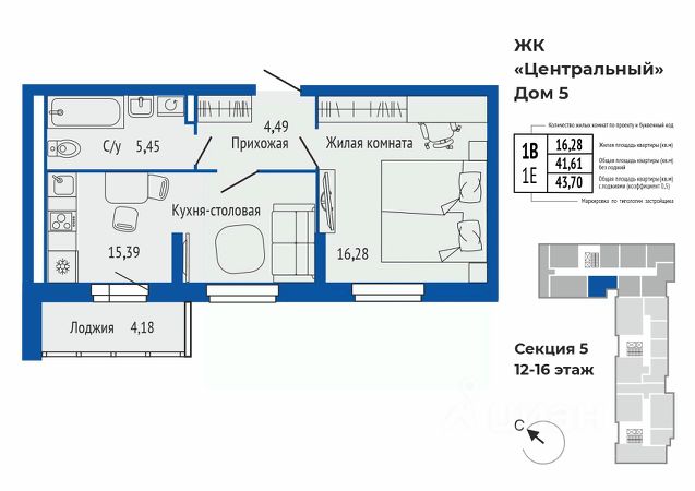 Продается 1-к квартира в жилом комплексе Центральный 5