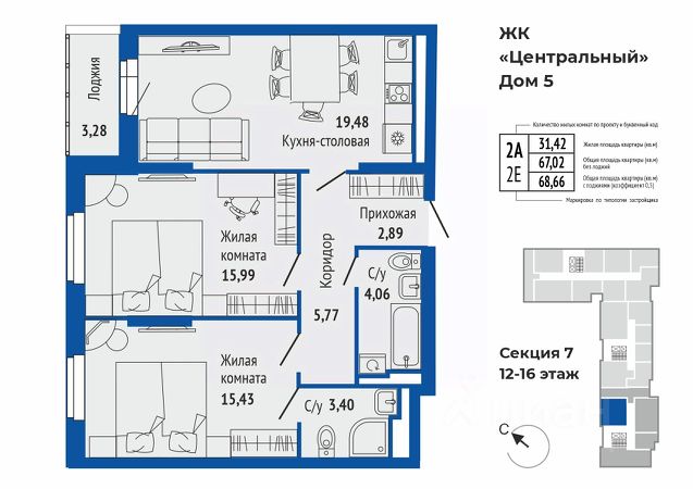 Продается 2-к квартира в жилом комплексе Центральный 5