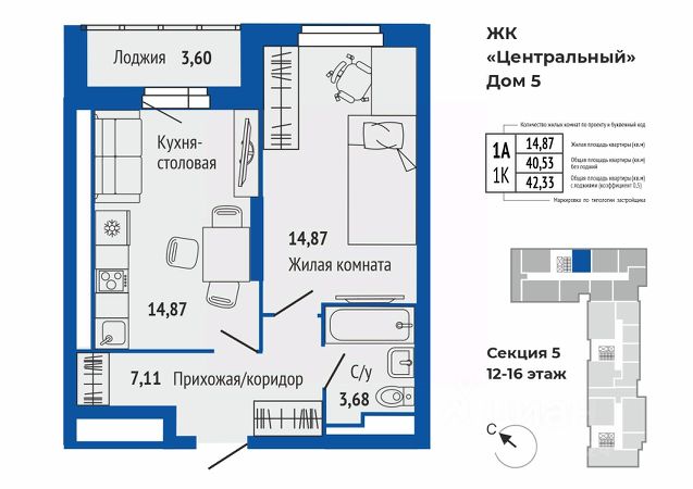 Продается 1-к квартира в жилом комплексе Центральный 5