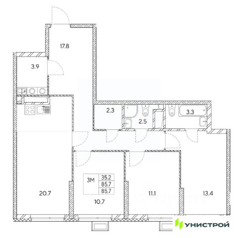 Квартира находится в ЖК "Бодровский" от федерального застройщика "Паритет Девелопмент". Это жилой комплекс комфорт-класса с современной архитектурой, расположенный в Екатеринбурге в районе улиц Патриса Лумумбы и 2-й Новосибирской. Добраться от него до центра города можно всего за 25 минут, дорога до ЕКАДа займет 12 минут. В окружении жилого комплекса есть шесть детских садов, пять школ, три больших парка, пять спорткомплексов, в том числе курортный комплекс Уктус. Квартал состоит из двух секций переменной этажности (от 14 до 24 этажей) и подземного паркинга с кладовыми, к которым можно будет спуститься на лифте. На первых этажах предусмотрены коммерческие помещения: жители смогут сделать маникюр, воспользоваться услугами ателье, выпить кофе с круассаном, не покидая своего района. Ввод в эксплуатацию в III кв. 2027 года. Территория комплекса огорожена от машин и посторонних людей. Озеленение с многолетними растениями и деревьями создает ощущение близости к природе. Двор наполнен всем необходимым: песочницы и качели для самых маленьких, интерактивная башня для детей постарше, воркаут-зона и места для отдыха. На всей территории реализована безбарьерная среда. В парадных выполнен авторский ремонт. За счет панорамного остекления и 4-метровых потолков там всегда много естественного света. Предусмотрены колясочные с местами для хранения спортинвентаря и креплениями для велосипедов. В проекте представлены студии, классические одно- и двухкомнатные варианты, а также двух-, трех- и четырехкомнатные квартиры в евроформате площадью от 25,32 до 76,65. Все планировки — функциональные и подходящие новоселам как с детьми, так и без них. Есть варианты с лоджиями, где можно организовать дополнительное пространство для отдыха, спорта или работы, а еще квартиры с мастер-спальней, гардеробной, двумя санузлами. В каждой предусмотрена вытяжная вентиляция с естественным побуждением, счетчики с телеметрией и корзины для кондиционеров. Характеристики квартиры: этаж - 16 количество комнат - 3 номер помещения - 327 площадь квартиры - 54,02 кв.м Чтобы сэкономить время и деньги, можно приобрести квартиру сразу с ремонтом от застройщика. На выбор 3 конфигурации: базовый, с кухонным гарнитуром, с кухонным гарнитуром и другой мебелью - в светлом и темном оттенках. Ремонт можно включить в ипотеку.