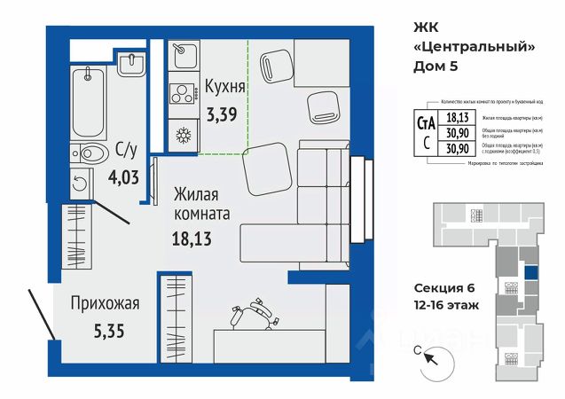 Продается 1-к квартира в жилом комплексе Центральный 5