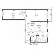 Квартира с кухней-гостиной и двумя спальнями в квартале "Траектория". Особенности планировки: второй санузел, гардеробная, лоджия, потолки 3 м и выше, предчистовая отделка, разнесённые спальни.