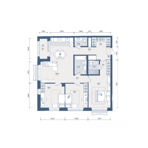 квартиры в нашей базе: ЗНГ01-Ж1.4.3.