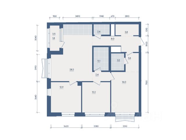 Квартира с кухней-гостиной и двумя спальнями в проекте Гоголя 21. Особенности планировки: потолки 3 м и выше, свободная планировка.