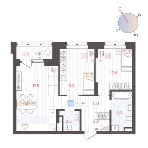 Продаётся 2-комнатная квартира в строящемся доме (Дом 2), срок сдачи: IV-кв. 2028, общей площадью 58.1 кв.м., на 4 этаже. Новый жилой комплекс "Да на Амундсена" от застройщика "СЗ Да на Амундсена" расположен по адресу: г. Екатеринбург, улица Амундсена.