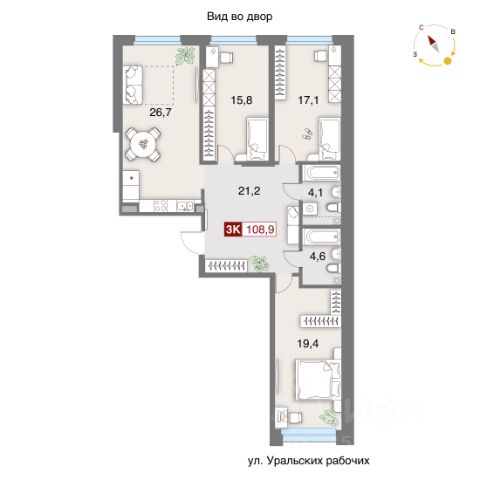 Квартира находится на 4м этаже, окна выходят на 2 стороны, на улицу Индустрии и Лицей 128.