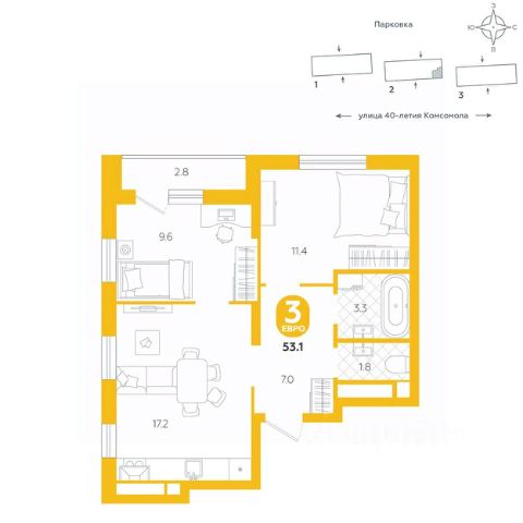 Евроформат объединяет кухню и гостиную в одно просторное помещение, что создает ощущение свободы и открытости пространства. Такая планировка предлагает гибкость в оформлении интерьера, позволяя обустроить зону в соответствии с личными предпочтениями, будь то уютный уголок для чтения или стильная обеденная зона. Идеально для тех, кто стремится к гармонии практичности и эстетики в своем доме. Квартира располагается в ЖК "Комсомольский" — жилом комплексе комфорт-класса. Здесь вы будете наслаждаться беззаботной жизнью, ведь ваш дом — воплощение практичности, безопасности и надежности. Для удобства предусмотрены колясочные на первых этажах домов, где можно оставить велосипеды и коляски в тепле. За безопасность отвечают система электронных ключей и видеонаблюдение. Еще здесь собственная котельная, поэтому в доме всегда будут горячая вода и оплата счетов только за фактически потребленное тепло. ПРЕИМУЩЕСТВА ЖК На этаже 15 квартир Красивые и функциональные парадные с мягкой и стильной зоной для отдыха, книгообменником, встроенными почтовыми ящиками и нишами для сумок Колясочные с доступом по ключу IP-домофоны Тихие лифты с плавным ходом О ПРОЕКТЕ ЖК "Комсомольский" строится в спокойном Кировском районе Екатеринбурга в границах улиц Сыромолотова — Рассветная — 40-лет Комсомола. Комплекс состоит из трех домов переменной этажности, которые выделяются динамичными линиями, выразительными фасадами и стильными лоджиями. ЛОКАЦИЯ Всё, что необходимо для повседневной жизни, находится недалеко от дома: школы, детские сады, продуктовые магазины, фитнес-клубы. Дорога до центра города на машине займет всего 10 минут — достаточно повернуть с улицы 40-летия Комсомола на улицу Владимира Высоцкого. Рядом с этим перекрестком начинается "Тропа здоровья" — большой терренкур вдоль "Каменных палаток". 10 мин до центра 3-4 минуты до школы No 82, гимназии No 176 4-5 минут до детских садов No 208, No 583, 266 20 мин до Свердловского областного медицинского колледжа и Центральной городской больницы No 7 В рамках стратегического развития района на первых этажах домов появятся коммерческие помещения, в которых откроются магазины и кафе. Следует учесть, что к 2030 году в Кировском районе планируется формирование регионального рекреационно-оздоровительного кластера, строительство ветки метро, расширение и модернизация старых промышленных зон социальной и бизнес-инфраструктуры, что приведет к созданию комфортной среды для жизни. Кроме того, в стратегию входит развитие Шарташского лесного парка как центра регионального и международного туризма. СПОСОБЫ ПОКУПКИ Ипотека: подберем выгодные условия в нескольких банках, чтобы вы могли выбрать лучшее Материнской капитал: можно использовать в качестве первоначального взноса Рассрочка: платите частями без % Сертификаты: позволяют оплатить часть стоимости квартиры О КОМПАНИИ "Паритет Девелопмент" — это современный и ответственный подход к реализации проектов в сфере жилищного строительства. Компания формирует сре