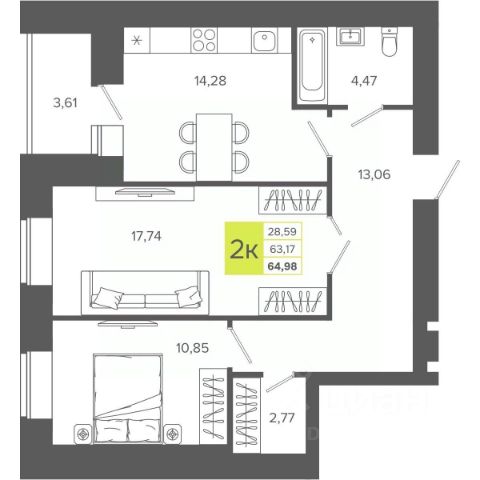 • ✓ В базе Циан 1 квартир на 6 этаже в Богдановиче