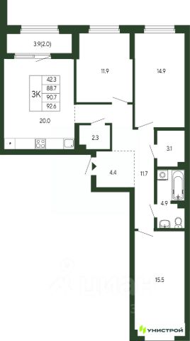 Дом монолитный, двухподъездный, переменной этажности, от 23 до 30 этажей. Квартира находится в 1-й секции высотой 30 этажей в корпусе 1. На этаже 10 квартир. В подъезде 2 пассажирских и 2 грузовых лифта. Окончание строительства - 4 квартал 2028 года. Оформление сделки по договору долевого участия.