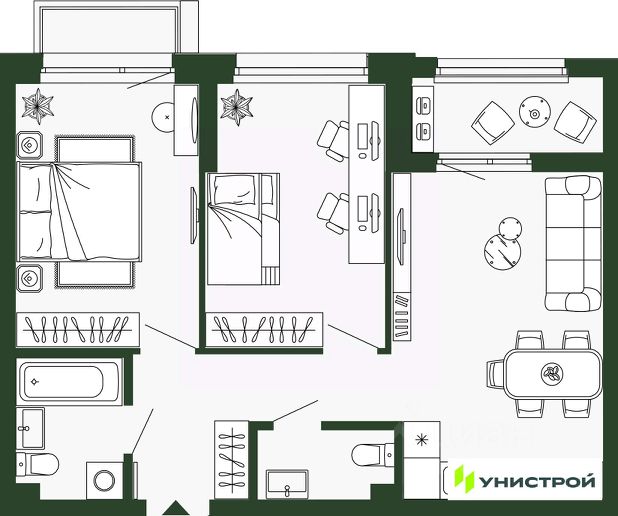 Ремонт с капсульной меблировкой — когда всё готово к жизни. Мы соединили качественный ремонт и продуманную меблировку в одном флаконе. Словно "с иголочки", новая квартира готова и обставлена с чувством стиля