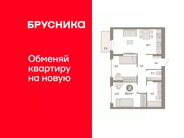 Квартира с кухней-гостиной и одной спальней в квартале "Траектория". Особенности планировки: балкон, предчистовая отделка.
