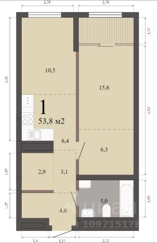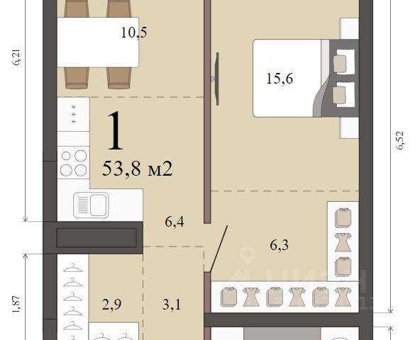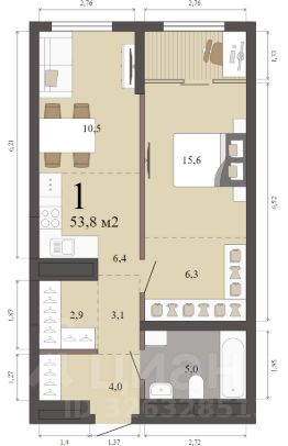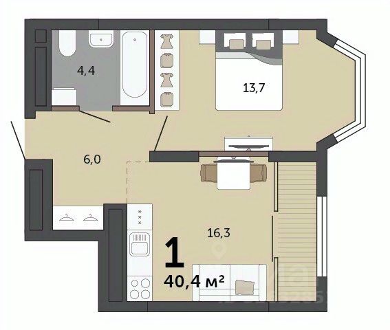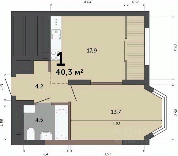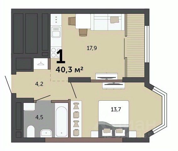 Площадь: 25,8 кв. м. Продуманная планировка позволяет использовать каждый метр с комфортом.