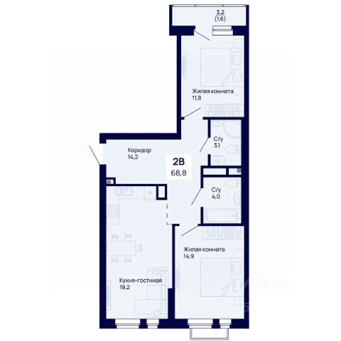 - 2022 г. постройки, материал стен монолитно-кирпичный.