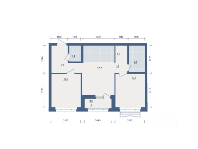 Квартира с кухней-гостиной и двумя спальнями в проекте Гоголя 21. Особенности планировки: свободная планировка.