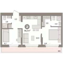 2-комн. квартира с предчистовой отделкой в ЖК "Квартал Траектория" на 8 этаже. Общая площадь: 83.2 кв.м., жилая: 26.2 кв.м., площадь просторной кухни-столовой: 29.9 кв.м. Комнаты изолированные, все окна выходят на одну сторону. В квартире две лоджии, два совмещенных санузла. Высота потолков 2.82 м. Дом монолитный, многоподъездный, переменной этажности, от 7 до 16 этажей. Квартира находится в 4-й секции высотой 16 этажей в корпусе 1-2. На этаже 7 квартир. В подъезде 1 пассажирский и 1 грузовой лифт. Начало строительства - 4 квартал 2025 года. Окончание строительства - 4 квартал 2027 года. Оформление сделки по договору долевого участия. Квартира с кухней-гостиной и двумя спальнями в квартале "Траектория". Особенности планировки: гардеробная, стартовая цена, лоджия, разнесённые спальни, предчистовая отделка, мастер-спальня. квартиры в нашей базе: МНВ01-Ж12.8.1. Квартал "Траектория" строится в границах улиц Билимбаевской, Расточной, Монтажников и Маневровой Раньше здесь находился оборонный завод 5-ЦАРЗ, основанный в 1945 году. После войны он ремонтировал военную и грузовую технику — от "Виллисов" и "Студебекеров" до советских ЗИС-5 и ГАЗ-67. Сортировка — район с развитой инфраструктурой, обжитыми жилыми кварталами разных эпох и большим количеством парков. До центра Екатеринбурга — 20 минут на машине. Туда же можно отправиться на автобусе: ближайшая остановка общественного транспорта — в 4 минутах от "Траектории". Рядом с "Траекторией" расположены магазины, торговый центр, детские сады, школы, поликлиники и полезные сервисы, а также другой проект Брусники — квартал "Депо". Если хочется развлечений, можно отправиться в ТРЦ "Карнавал" и парк с аттракционами "Таганская слобода" — дорога туда займёт не более 10 минут на машине. Квартал "Траектория" — первый этап комплексного развития территории, которую раньше занимали производственные здания. На месте бывших цехов Брусника создаст дружелюбную среду и комфортное пешеходное пространство для всего района. Для озеленения квартала мы подобрали больше 60 видов растений: ольху, липу, клён, иву, грушу, вишню, сирень, барбарис, гортензию, смородину, ирис, декоративные травы. Они цветут в разное время года и постоянно меняют настроение двора. В "Траектории" мы предусмотрели несколько общественных пространств, открытых для всех горожан: встречающий сквер, лесопарк у храма и событийный сквер между домами. Когда захочется тишины и уединения, можно устроить прогулку во внутренних дворах: в них нет машин и посторонних, зато много зелени, света и мест для отдыха. Каждый двор в квартале "Траектория" — продолжение квартиры, только под открытым небом. Здесь можно прогуляться босиком по траве, устроить утреннюю йогу, почитать книгу в гамаке или отправить детей поиграть, не переживая за их безопасность. Мы закроем дворы от машин, чтобы создать безопасную среду для отдыха. Применим натуральные материалы в отделке малых архитектурных форм — дерево, камень, металл без лишней обработки. Внутри каждого д
